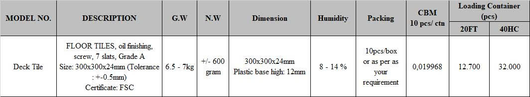 The product is outdoor wooden floor tiles. This is a pre-assembled wooden panel, often used for paving balconies, gardens, swimming pool areas, or outdoor spaces – both aesthetic and convenient in construction.
