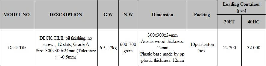 Surface material: Natural Acacia wood, treated against warping, termites, and good resistance to sun and rain.