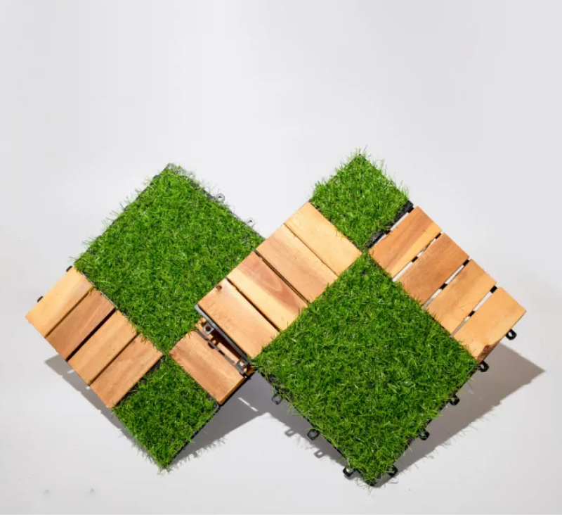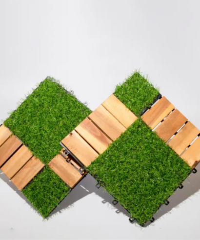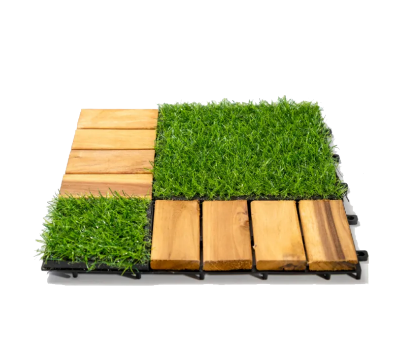 Acacia Wood Mix Artificial Grass Tile is a unique combination of natural Acacia wood and high-quality artificial grass, providing a modern, durable and natural flooring solution. The product not only helps the space become green and luxurious but also ensures long-term durability, suitable for many interior and exterior decoration styles.