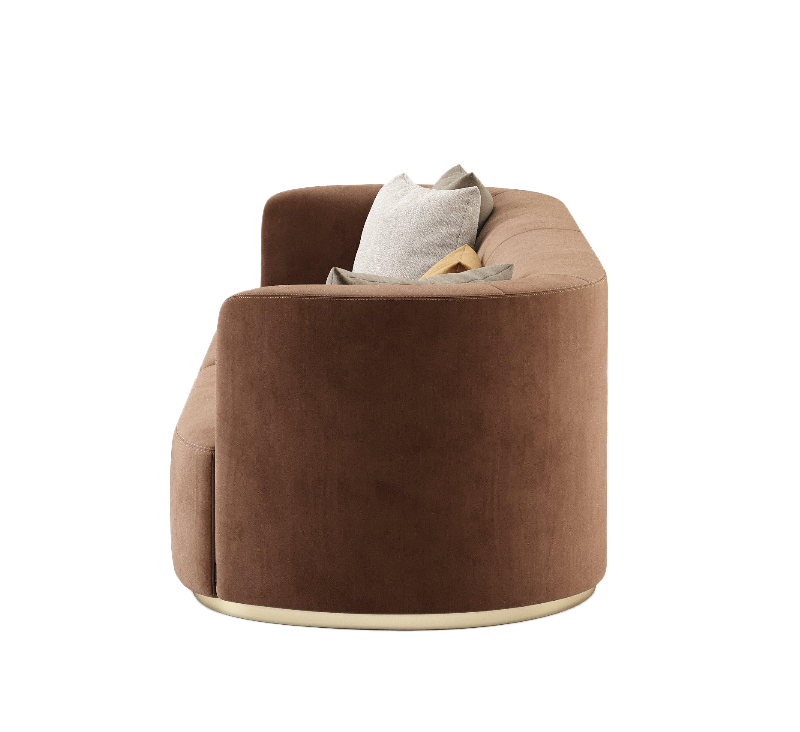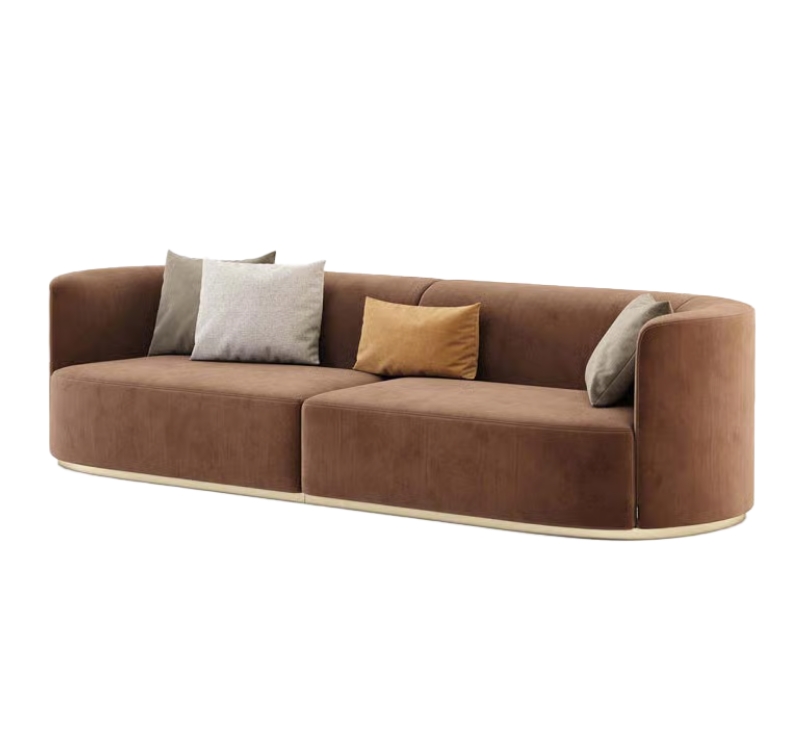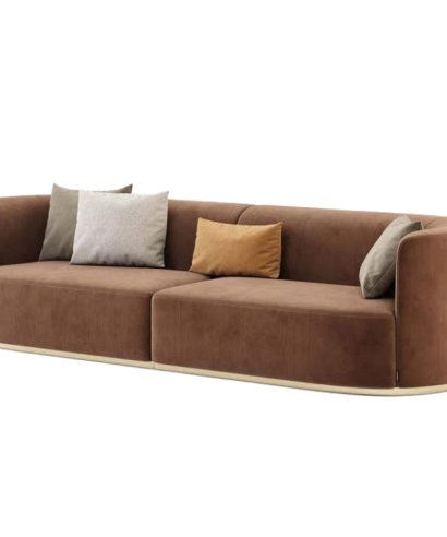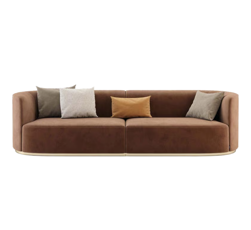 The 3-seater sofa with soft rounded design, modern minimalist style but still exudes sophistication. Warm brown tones combined with colorful decorative pillows create a unique highlight, suitable for many living spaces.