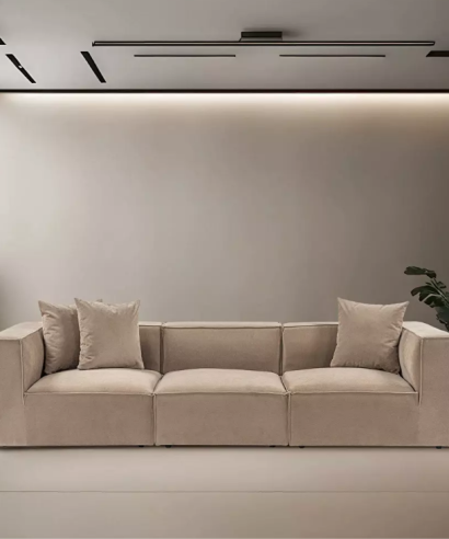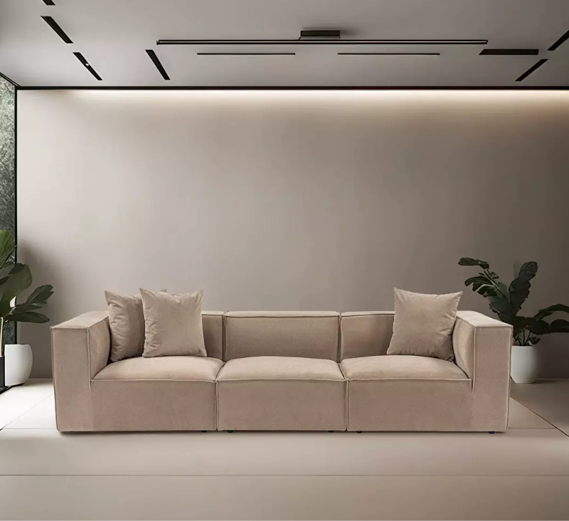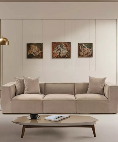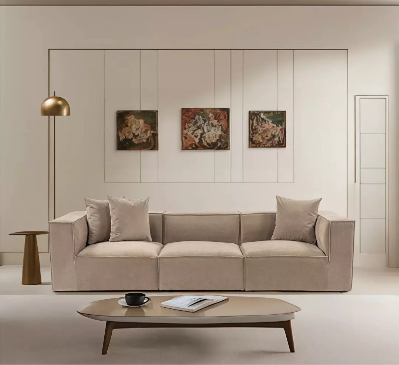 This sofa is designed in a modern style, with square, strong lines but still exudes sophistication and luxury. The chair includes 3 spacious seats, sturdy square armrests, suitable for living rooms, lounges or office reception spaces.